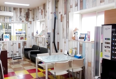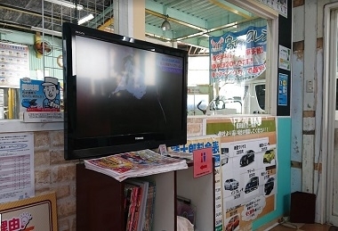 待合室から車検工場の様子もご覧頂けます!近くにはお食事できるお店もございます。