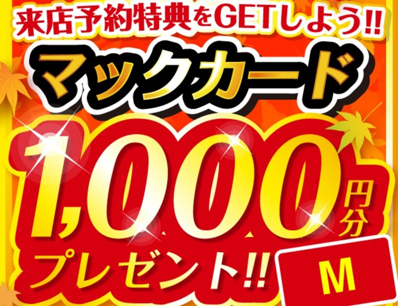 また、事前にご来店予約を頂いたお客様限定で、ご契約とならなかったお客様にも、来店予約特典として「マックカード1,000円分」をプレゼント!!お気軽にご相談、ご来店下さいませ!