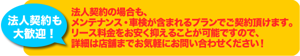「フラット7 東淀川店」では、リース終了後の売価予想価格(残存価格)を高く設定しておりますので、他のリース会社と比べて、圧倒的に安い定額料金で軽自動車・普通車の新車に乗ることが可能です!そのため、個人の方のご家庭用のご利用はもちろん、法人や個人事業主の方にもおすすめのカーリースです。